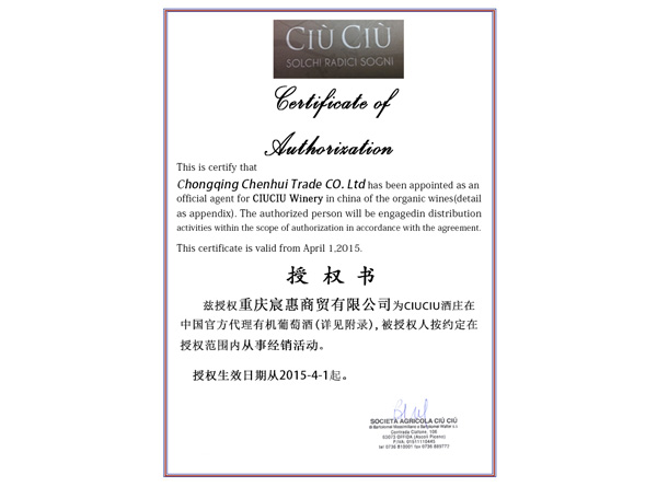 重慶市宸惠商貿有限公司是一家經營有機商品的進口商, 公司致力于為廣大中國消費者提供高品質高性價比的葡萄酒,是全國第一批